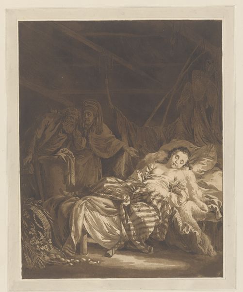 William Pether created this mezzotint, "Betaling aan een rabbijn," sometime during his career, which stretched from 1733 to 1821. The print, whose title translates to "Payment to a Rabbi," offers insight into the complex dynamics of cultural representation and perception in 18th-century Europe. Consider the image: a turbaned figure, presumably the rabbi, sits prominently as another man offers payment. A younger man diligently records the transaction, with onlookers in the background. How might the contemporary viewer have interpreted this scene? Was it an effort to document unfamiliar customs, or did it cater to existing stereotypes? The artist's choices—in composition, lighting, and detail—invite us to consider the ways in which identity is constructed and negotiated through visual representation. By exploring such imagery, we can unpack the historical layers of prejudice, curiosity, and the human desire to understand those different from ourselves.