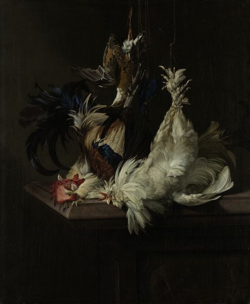 Pierre Dupuis' canvas presents us with a visual inventory of the spoils of the hunt. In this scene, we witness a collection of dead game laid out on a stone table, draped with a rich, red cloth. The symbols here—dead animals—are not merely about the act of hunting. They speak to humanity’s complex relationship with nature. The slain animals evoke vanitas, the transience of life, a theme that resonates deeply throughout art history. Consider how similar motifs echo in ancient Roman art. The display of captured animals in gladiatorial games served as a potent symbol of power. Later, in medieval tapestries, the hunt symbolized noble virtue and dominion over nature. These themes resurface, transformed, in Dupuis' work, mirroring our ongoing cultural dialogue with mortality. The psychological impact is profound. This carefully arranged scene invites us to confront our own mortality, triggering deep, subconscious reflections on the fleeting nature of existence. The trophies, then, become a mirror reflecting humanity’s eternal quest for meaning. The symbol evolves, each era layering new interpretations upon the old.