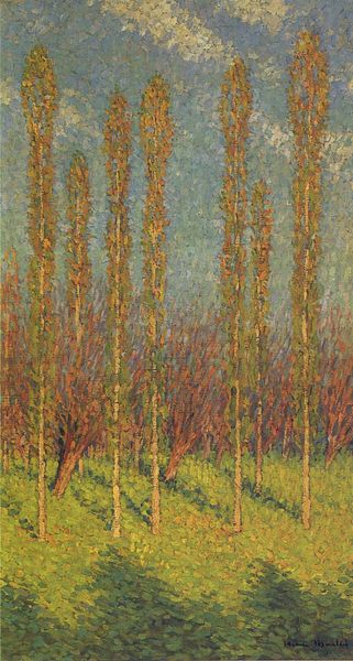 Henri Martin painted ‘The Poplars’ with a mosaic of brushstrokes that bring the trees to life. Poplar trees, with their upward reach, are symbols of growth and resilience. Consider the symbolic charge of trees throughout history, from the sacred groves of ancient religions to the Tree of Life in countless myths. These are not mere decorative elements; they touch upon our collective memory, evoking a sense of primal connection to nature. The verticality of the poplars mirrors that of classical columns, suggesting a reaching towards the heavens. This evokes a deep-seated longing for transcendence and a symbolic bridge between the earthly and the divine. There is an emotional resonance; the interplay of light and shadow creates a dynamic space, engaging viewers on a subconscious level. The poplars remain a potent symbol, resurfacing and evolving in response to the human psyche across time.
