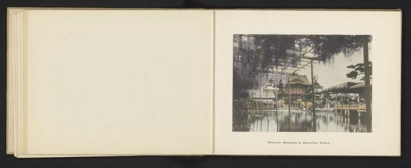 Kōzaburō Tamamura made this photograph of Tamadare Waterfall near Hakone in the late 19th or early 20th century. It’s a hand-colored albumen print, a process popular at the time for adding a painterly quality to photography. This image is particularly interesting when we consider the vogue for Japonisme in the West. In the late 19th century, there was an enthusiasm for Japanese aesthetics, particularly in art and design. Photography studios like Tamamura's catered to Western tourists and collectors, offering idealized views of Japan. Here, the waterfall, a traditional symbol of purity and renewal, is presented as an exotic and picturesque scene, framed for the Western gaze. To better understand the dynamics of cultural exchange at play in this image, we might consider the way guidebooks, travelogues, and museum collections shaped Western perceptions of Japan. The image functions both as a commercial product and a cultural document, reflecting the complex interplay of tourism, orientalism, and artistic expression during Japan's opening to the West.