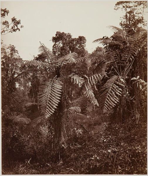 Editor: This photograph, “Bananenbomen,” or “Banana Trees,” by Theodoor Brouwers, was taken sometime between 1911 and 1932. The view into the grove is immersive, but I also feel somewhat distant from the lone figure standing amongst the trees. What catches your eye when you look at it? Curator: The layered composition immediately brings to mind questions of colonialism and labor. The visual appeal of the seemingly endless rows of banana trees belies the complex social realities embedded within these landscapes. How does this photograph reinforce or challenge dominant narratives about labor and agriculture during that period? Editor: That's interesting. I hadn't really thought about it in terms of labor. I was mostly reacting to the composition and light. It does seem a bit romanticized. Curator: Exactly. The aestheticization of labor normalizes the exploitation. Photography in colonial contexts often served to document and celebrate resource extraction and agricultural enterprises, but rarely addressed human rights or equity. Who do you think is the figure standing amongst the trees, and what is their purpose here? Editor: Perhaps a foreman or overseer? Someone in a position of authority, rather than someone who is directly involved in planting or harvesting? Curator: Precisely. Consider how the photographer, Brouwers, likely had a privileged position and a certain worldview that shaped how he composed this image. Can we then reclaim the aesthetic beauty of this image by subverting the ingrained colonial narratives it seems to portray? Editor: It definitely gives me a lot to think about regarding photography's role during this era, and the hidden stories it often holds. It changes how I see the aesthetic appeal itself. Curator: Indeed. By interrogating such artworks, we engage with complex historical dialogues, bridging past injustices with contemporary ethical consciousness.