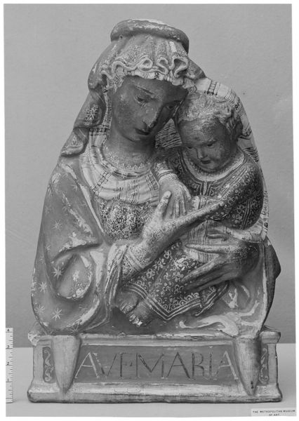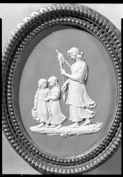 Curator: This is Wedgwood's "Mother and Children, from 'Domestic Employment'." Editor: It projects a somber mood. The stark white figures against the grey background create a sense of detachment. Curator: Given the period, this piece likely reflects the societal expectations placed upon women within the domestic sphere. Motherhood as a central, defining role. Editor: The composition is interesting. Notice the contrast between the standing mother and the two seated children. There is a sense of classical contrapposto in the mother’s stance. Curator: Yes, and consider the implications of "domestic employment." It elevates the unpaid labor of women to a profession, while also highlighting its limitations. Editor: True, the rigid lines and limited color palette reinforce a sense of constraint. Curator: This artwork offers insight into the complex dynamics of gender, labor, and family in the 18th century. Editor: It’s a compelling study in form and social commentary.