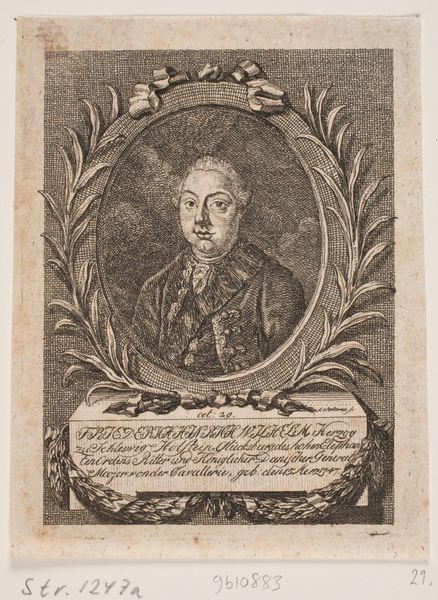 Andreas Reinhardt created this engraving of Kong Frederik IV, though the exact date remains unknown. Reinhardt, working in a period defined by strict social hierarchies, presents us with more than just a royal portrait; it's a carefully constructed image of power and identity. Consider the elaborate wig, the regal crown held by cherubic figures, and the formal attire. These are not simply aesthetic choices, but deliberate symbols designed to communicate the King's authority and divine right to rule. The engraving performs the important work of maintaining traditional representations of power, but this image does more than just mirror existing power structures, it actively reinforces them. What might it have meant to the subjects of Frederik IV to see their king represented in such a way? How did this image shape their understanding of their own place in society? This engraving invites us to reflect on the ways in which images can perpetuate, and at times challenge, societal norms.