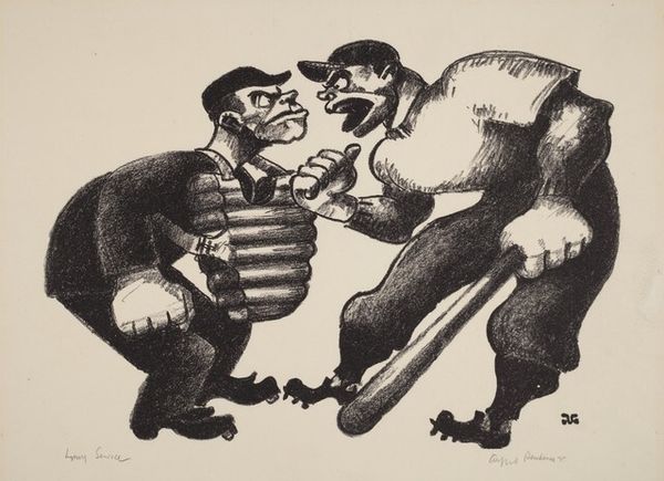 Curator: I find this untitled work by Ivan Eyre, which we’ve designated “Study for High C”, particularly arresting. The forms, seemingly rendered with graphite and pen, occupy an ambiguous space, hovering somewhere between the representational and the utterly surreal. Editor: My first thought is…unsettling. There's a visceral quality to the figures, an almost grotesque distortion that makes me deeply uncomfortable yet compels me to keep looking. What do you make of these doubled heads? Curator: The doubled heads certainly carry significant symbolic weight. Given Eyre's wider practice, steeped as it often is in Jungian archetypes, they evoke ideas around the fragmented self, the conscious and unconscious struggling for dominance within a single entity. Note the stark contrast in tone – one almost monochrome and one bursting with pigment – as though one figure suppresses the other. Editor: It also brings to mind the historical role of caricature, of playing with and distorting the human form to satirize or critique power structures, a long artistic tradition. It begs the question: what exactly is being critiqued, what cultural moment are these contorted visages capturing? Curator: I believe Eyre probes more personal anxieties. He’s not concerned here with broad societal critique but, rather, with the internal conflicts and the hidden faces we all possess. These images tap into a cultural memory of grotesque forms meant to repel but instead reflecting inner turmoil. Editor: Even if Eyre's intentions were focused inward, isn’t the artwork's reception inextricably tied to wider cultural trends? In my view, it will be shown in galleries, collected, and inevitably become part of the grand narrative that is visual art, even if it was not consciously intended as a political statement. Curator: Agreed, and museums clearly participate in canonizing individualistic art, shaping what society remembers and values, and there are often inherent sociopolitical elements no artist can divorce from their vision. But, the raw, unnerving quality here speaks, I think, more deeply to timeless aspects of the human condition: self-doubt, alienation, and inner conflict. Editor: An astute point. Seeing Eyre wrestle with interiority does provide an opportunity for reflection on societal roles shaping those interiors. Regardless, "Study for High C” offers ample ground for contemplation. Curator: Precisely. Its ambiguity allows each of us to find within its lines a mirror reflecting our own unique psychological landscapes.