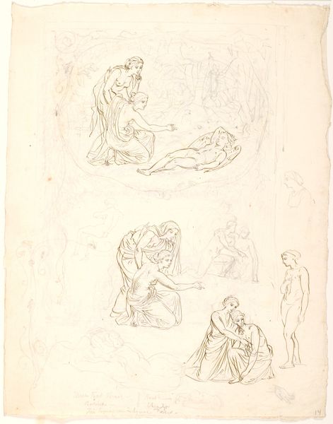 This Study of Various Figures was made by Hans Rottenhammer with pen and brown ink on paper. Here, the artist employed the traditional medium of drawing to explore the human form, a practice rooted in the Renaissance workshop tradition. Notice the flowing lines and delicate shading, revealing the artist's skillful hand and understanding of anatomy. The figures seem to emerge from the blank page through rapid strokes that define contours, posture, and drapery. These figures may have been preparatory sketches for a larger painting, with the artist working out compositions and poses in a process of trial and error. In Rottenhammer's time, the art world operated through a studio system, where master artists employed assistants to produce works for wealthy patrons, as well as for devotional purposes. Consider how each drawing represents an investment of time, skill, and labor, reflecting the social and economic dynamics of artistic production in the 16th and 17th centuries.