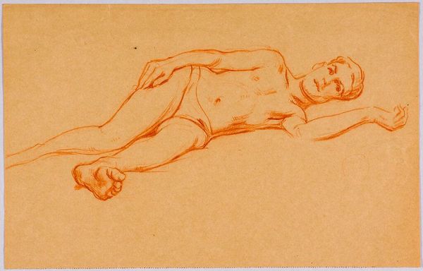 Editor: This is Egon Schiele's "Reclining Female Nude" from 1908, rendered with watercolor and drawing. It strikes me as both vulnerable and strangely powerful, don't you think? What feelings does it evoke in you? Curator: Vulnerable, yes, but there’s defiance there, too. Look at how Schiele uses line – almost violent in its intensity. The washes of color? Like bruised flesh blooming beneath the surface. To me, this isn’t just a nude; it’s a raw nerve exposed, wouldn’t you agree? Editor: Absolutely, the angles feel so sharp, almost unsettling. But how does this relate to the artistic currents of the time? Curator: Well, think Vienna at the turn of the century – a society grappling with repressed desires, anxieties bubbling under the surface. Schiele, along with others, were challenging conventions of beauty and sexuality. It's more than just a portrait; it’s a reflection of a changing cultural landscape. Do you see that echoed in the palette itself, its earthiness fighting against delicacy? Editor: I do. So, the intentional rawness reflects a larger societal shift? Curator: Exactly. Schiele’s art feels incredibly relevant even now, doesn’t it? That capacity for unflinching honesty... it's like a mirror held up to ourselves. Editor: I'll never see a nude quite the same way again. Curator: Good. That's the point, isn't it? To see beyond the surface and glimpse the raw beauty – and the messy truths – within.