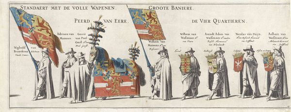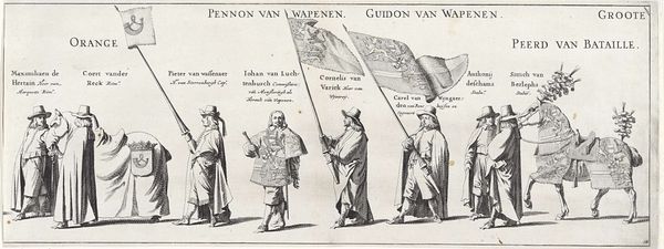 This processional scene was made with pen and brown ink, with a brush and watercolor, in the 17th century. It depicts noblemen in a formal arrangement. What immediately strikes you is the care and precision of the rendering. Mellan has used the pen with the steady hand of an engraver. You can almost imagine him tracing the scene, as if cutting into a copper plate. Look closely, and you can see the light, delicate hatching that gives the figures volume. And the washes of color, they subtly bring the scene to life, adding depth to the costumes. The social context here is crucial. This is a depiction of power and status. The men are all in ceremonial dress, bearing flags and emblems. Their garments and horse trappings are rendered with painstaking accuracy, emphasizing the importance of heraldry and display to the nobility. The work speaks to the importance of craft and skill in affirming social standing. It is a reminder that artistic practices are not only about aesthetics, but about the making and solidifying of social hierarchies.