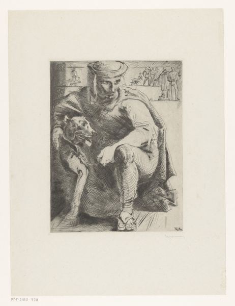 Editor: This is "Three Monkeys on a Tree Trunk" by Theo van Hoytema, from 1898. It's a pencil drawing, and it feels very…stiff. The monkeys look posed, not natural. I wonder, what strikes you most about this drawing? Curator: I'm drawn to the materiality. It’s just pencil on paper, yet Hoytema achieves such texture. Think about the labour involved: each hair, each shadow, carefully rendered. Was this study for a larger work? A commentary on the burgeoning popular interest in exotic animals and, dare I say, their exploitation? The Dutch were, after all, deeply involved in global trade. Editor: That’s a darker read than I expected. So, you’re seeing the *process* as reflective of colonial activities? Curator: Precisely. Look at the detailed realism. It borders on scientific illustration. But it's *also* art. The pencil, a tool accessible to many, elevates the animal to a subject worthy of intense study, transforming labor into a product to be consumed and valued. I wonder, where were these monkeys kept? Zoo? Private collection? Editor: I hadn’t considered the connection to colonialism and trade at all. Curator: It's in the *making*, in the means of representation itself, that we can find evidence of social context. Even this choice of ‘common’ materials… it subverts typical art expectations of its time. Editor: Wow. I’ll definitely be thinking about the 'how' of art a lot more closely from now on! Curator: Exactly! Considering the artist's means changes the perspective and allows us to unveil layers that were always there.