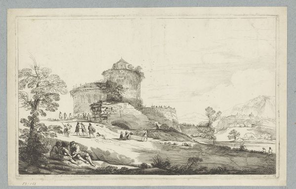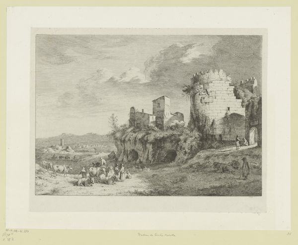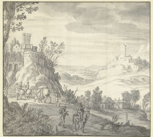 Andries Both created "Figures Crossing Stone Bridge Above Boat Ferrying Barrels" using pen and brown ink with gray wash. This artwork invites us into a serene yet active landscape. The composition, primarily in muted grays and browns, creates a subdued, almost dreamlike atmosphere. Both’s use of wash gives depth and texture, contrasting with the sharper lines of the architectural details and figures. The structure is divided into distinct zones, with the stone bridge and buildings on the left and the boat and figures on the right. This division highlights a semiotic play between transit and stasis. The bridge, a symbol of connection and passage, contrasts with the boat, which suggests waiting or departure. The figures scattered throughout the scene further underscore these themes, creating a visual field where movement and stillness coexist. This delicate balance invites us to reflect on the broader themes of transition, connection, and the human condition within a structured environment.
