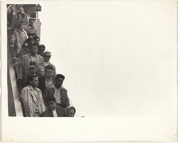 This photograph of workers leaving the Esso plant in Baton Rouge, Louisiana, was taken by Robert Frank. It’s a very physical image, not just in terms of the subject matter. Look at how Frank coaxes so much grey from his materials. It’s like he's wrestling with light and shadow. The grainy texture, the stark contrasts, really hit you in the gut. There’s a man in the foreground with a cigarette hanging from his lips, the smoke a fleeting wisp in the air, and the newspaper tucked under the arm of another guy, a symbol of the everyday grind. Those hard hats, they're like halos, but for labor, for the working class. Frank’s work reminds me a little bit of Walker Evans, that same eye for the mundane, but with a rawer, more personal edge. What does this photo mean? Who can say? It's a slice of life, a moment in time, but it's also a whole world of stories.