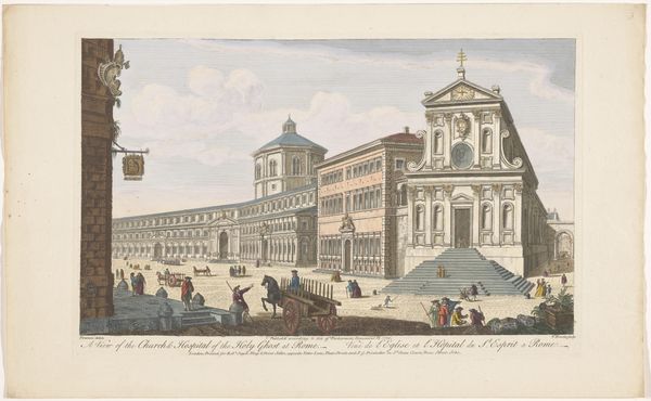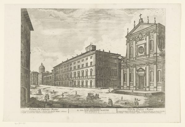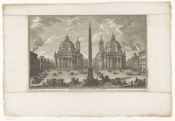 Johann August Corvinus created this print of the Schönborn Chapel next to the Würzburg Cathedral during the early 18th century, a period marked by significant religious and architectural developments in Europe. The image captures not just the physical structures, but also the social fabric of the time. As we observe the chapel and cathedral, consider their role as more than just places of worship; they are also symbols of power and status within their community. The presence of people from various social strata suggests a space where societal hierarchies are both reinforced and, perhaps, momentarily transcended. How might the grandeur of these buildings have impacted the lives and self-perception of the common people depicted here? This image invites us to reflect on the intersection of faith, architecture, and everyday life in shaping identity and community.
