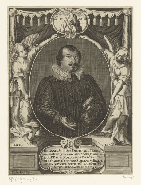 Matthias van Sommer created this print of Abraham Fino of Amsterdam, a striking depiction made in 1653. This was a period when the Dutch Republic was a major economic and cultural power, deeply involved in global trade and colonial expansion. The portrait presents Fino as a figure of status, indicated by his dress. Yet the inscription below suggests a humbler, perhaps more personal, narrative. The use of both Latin and German hints at a man of some education, straddling different cultural worlds. It makes me consider how Fino navigated his identity, in a society that was becoming increasingly diverse due to its global reach. Think about what it meant to commission a portrait during this era. It was a statement of self-fashioning, but also a negotiation between public image and private identity. This piece evokes questions about how we perform our identities, and the stories we choose to tell the world, and ourselves.