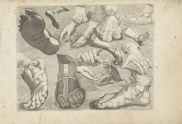 This is a print made by J.F. Clemens, probably in the late 18th or early 19th century. It's made using etching and engraving, techniques that allow a single image to be reproduced many times. Prints like this were often made as studies for artists. Note the artist's careful study of the feet and hands; these kinds of details were essential to master in representing the human figure. The stark quality of the etched line gives a sense of the labor involved in achieving such a detailed likeness. Each line is a product of skilled work, and the effect is less about the individual model and more about the artist's capacity for diligent observation. Prints like this reveal the more workaday aspects of artmaking, a reminder that even the most seemingly effortless paintings and sculptures rely on a foundation of craft. Appreciating the labor and skill in this study helps us see beyond traditional hierarchies between fine art and craft.