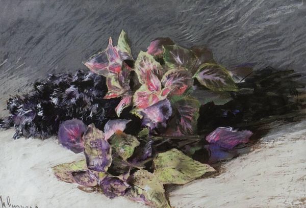 Editor: We're looking at Vasily Polenov's "Burdocks," painted in 1875. It's an oil painting that really strikes me with its unusual focus—we're so close to these plants, and they’re not the most conventionally beautiful subject. What’s your take on this particular slice of nature? Curator: Well, focusing on seemingly mundane subjects became quite important in the latter half of the 19th century. This intimate portrayal moves away from idealized landscapes to look at how landscape painting began to grapple with industrialisation. This image is more interested in observing and appreciating nature’s minutiae – did nature become a kind of refuge from growing cities? Editor: That's an interesting point! So, in a way, Polenov isn't just painting plants; he’s making a statement about society’s relationship with the natural world? Curator: Precisely. Notice also how Polenov’s choice to depict this angle implies an unglamorous vantage point - not the typical sweeping vista. Who gets to paint, what they choose to paint and how becomes rather important. Why elevate burdocks and not roses, for instance? Editor: I never considered that, it also feels quite contemporary, in that way. Is Polenov's choice a kind of early environmental statement? Curator: That's a compelling idea! I’m not sure "environmental" is exactly how his contemporaries would have interpreted it, but it does reveal an interest in elevating the everyday. What does that reveal about Russian society at the time, though? That might be another line of questioning. Editor: So much to consider. I’ll never look at a simple landscape the same way. Thank you. Curator: My pleasure. Keep asking those insightful questions.