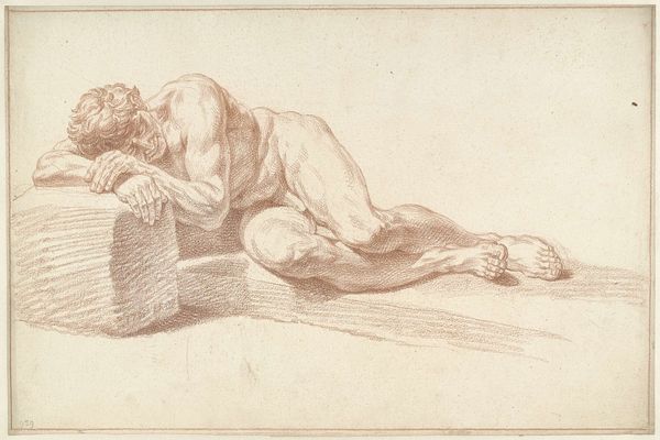 This drawing of a kneeling man was made by Pierre Puvis de Chavannes, using chalk on paper. The choice of chalk as a medium is interesting. Unlike painting with oils or acrylics, where color and texture can be easily manipulated, chalk demands a more direct approach. Here, the artist coaxes out light and shadow from the surface of the paper. You can clearly see the marks of the artist, the build up of the chalk in some areas, and the smudging in others. Consider the pose: the man is on the ground, at eye level with the viewer, pulling at a cloth around his waist. It evokes themes of labor and the working class. The figure seems both monumental and vulnerable. The apparent effort required to produce the drawing and the physicality of the subject are very much connected. This drawing shows us that even with basic materials, an artist can convey powerful social messages. It challenges the idea that fine art must always be polished and refined.