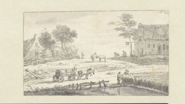 Anthonie van der Croos made this drawing of Huis ter Nieuburch, Rijswijk, from the east, using pen in the mid-17th century. The drawing presents a wide angle on flat, open land, with a large building in the distance and trees to the right. We see figures on the road in the foreground. Constructed in the early 17th century, Huis ter Nieuburch was the site where the Treaty of Rijswijk was signed in 1697, ending the Nine Years' War. Van der Croos made this drawing decades before that event. Landscape drawings such as this one reflect Dutch interests in mapping and claiming their territory, documenting the land after their independence from Spain was won in 1648. This drawing shows a country estate from a distance, without glorifying it. Instead, the artist uses muted tones to blend it into the landscape. Art historians research drawings like this to better understand the social and political context of art making. In this case, learning more about the Nine Years' War and the treaty signed at this estate can illuminate the symbolism of the drawing.