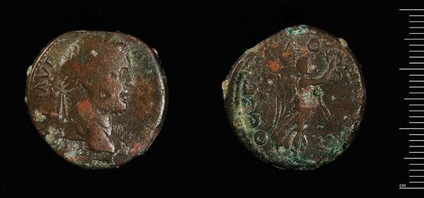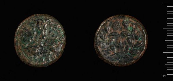 Editor: Here we have a coin of Patara under Gordian III. The texture and weathering create an aged, almost ghostly impression. What catches your eye about its formal qualities? Curator: The coin's circular form immediately draws attention, yet its imperfections disrupt perfect symmetry. Note the deliberate relief of the figures against the flat plane. How does the patina affect your perception of its artistic value? Editor: It blurs the detail, but also adds to its mystique, I think. Curator: Precisely. This ambiguity is key. Consider how the interplay of light and shadow across its worn surface invites interpretation. Editor: I see what you mean. The very imperfections are part of its power. Curator: Indeed. The coin's formal elements, even in their eroded state, speak volumes about artistic intention and the passage of time.