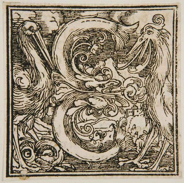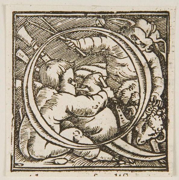 Editor: Here we have *Initial C*, created by an anonymous artist. It is located at the Harvard Art Museums. I see cherubic figures intertwined with the letter, creating a playful scene. What does this imagery evoke for you? Curator: Consider how the "C" might not simply be decorative. The playful cherubs and the ornate border could represent civic virtues or be linked to specific printing houses and their political affiliations during the time of its creation. What do you think about that? Editor: That makes sense! So, it's not just about aesthetics, but also about power and influence? Curator: Exactly! It makes you question what kind of message this art would have tried to convey and to whom it was addressed. Editor: I never thought about the politics behind such an innocent looking letter!