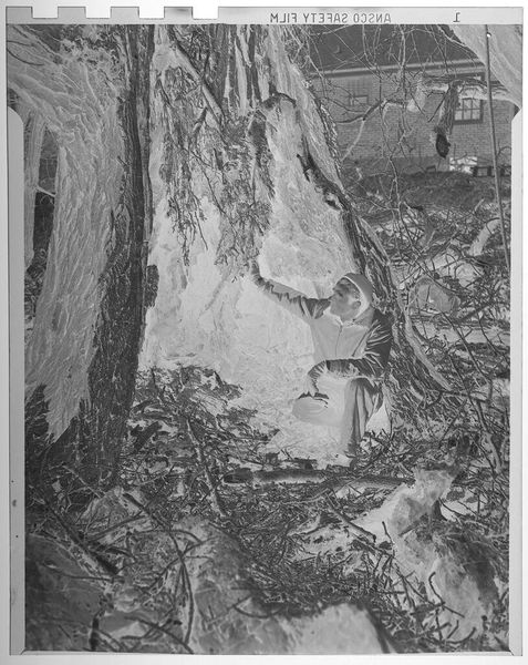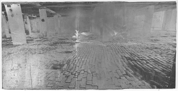 Editor: Here we have Anselm Kiefer's "Page opening 2 from 'The Heavenly Palaces: Merkabah'," a mixed media work on paper. The image is stark, almost industrial. What do you make of it? Curator: The overwhelming feeling of materiality is key here. Look at the dirt, the rough paper, the way Kiefer forces us to confront the literal substance of the artwork. This transcends simple representation, becoming about the physical act of creation and what is produced. Editor: So you're saying the process is more important than the subject? Curator: Not entirely, but inseparable. The subject matter-- these "heavenly palaces"--are brought down to earth, quite literally. How do you interpret the relationship between the title's grandiose promise and the gritty reality depicted? Editor: I guess it's a challenge to the viewer to find the "heavenly" within something so base. Thanks, that's a great way to consider it. Curator: Indeed, a reminder that even transcendence is rooted in earthly materials and labor.