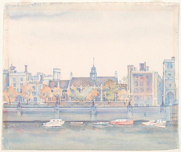 Herman Eduard Knaake made this watercolour painting, Gezicht op de Schreierstoren te Amsterdam, at an unknown date. It's all about the process, isn't it? The soft, washed colors give the whole scene a dreamy, almost melancholic feel. Look at the way he’s handled the sky, those grey clouds hanging heavy – they’re not just clouds, they’re a mood. And the water, so still, reflecting everything above. The painting’s surface is smooth, the washes blend seamlessly, creating a sense of atmosphere and distance. It's interesting to note how Knaake captures the Schreierstoren; it is solid, but rendered with such soft color it's like a memory or a fleeting impression. You see this with Whistler, too, this gentle capturing of place. It is all about a feeling of place, rather than a photographic record.