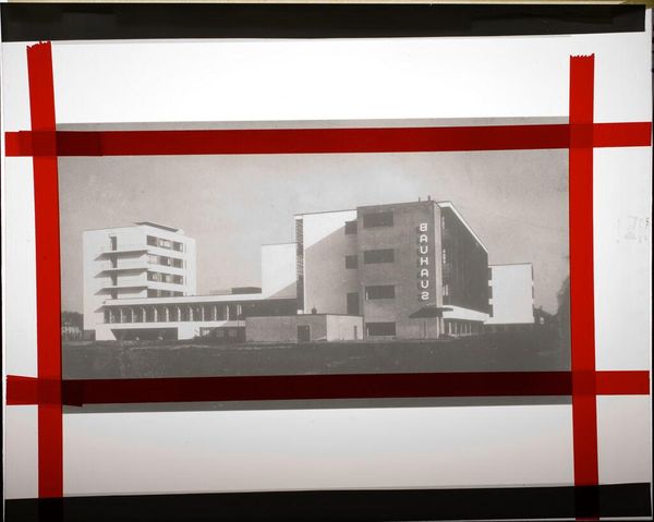 Curator: Here we have Klaus Hertig's photograph of the Bauhaus Building in Dessau, taken sometime between 1925 and 1926. Editor: It strikes me as rather austere. The composition feels very controlled, almost clinical. Curator: Indeed. The building itself became a symbol of the Bauhaus movement's utopian ideals. The glass curtain wall, for example, represented transparency, both literally and figuratively, in the school's philosophy. Editor: Transparency, yes, but also a kind of imposed order. This "total work of art" aimed to reshape society, but at what cost to individual expression and dissenting voices? It's a complex legacy. Curator: The photograph captures that tension so well, doesn’t it? It invites us to consider the weight of these symbols, the continuity of this modernist vision, and its psychological impact. Editor: Absolutely. It's a reminder that even the most forward-thinking movements are products of their time, grappling with power dynamics and social constraints. It's a stark image that deserves further examination.