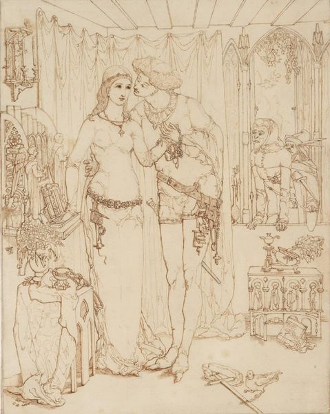 Curator: This is Édouard Vuillard's "Devant le miroir," created around 1898. It's a pastel drawing, a medium Vuillard often used to capture fleeting moments of intimacy. Editor: My first impression is a sense of quiet introspection. The soft lines and muted colors create a very serene, almost ethereal atmosphere. It feels like we're intruding on a very private moment. Curator: Exactly. Vuillard was a master of "intimism," portraying domestic scenes with a focus on mood and emotional resonance. Notice the woman’s pose; she's lost in her reflection, both literally and perhaps metaphorically. The choice of pastel certainly enhances the intimacy and delicacy of the scene. Pastels were easily accessible, relatively inexpensive and suited the quickly executed, captured moment Vuillard was aiming for. Editor: I'm drawn to the composition. The way the mirror frames the figure, echoing her shape with its curves, creates a really harmonious structure. And the stripes in her skirt provide a lovely contrast with the soft textures elsewhere. How do you interpret those formal elements in the broader context of his work? Curator: Vuillard often used patterns and textures to flatten space and create a sense of claustrophobia. It mirrors the close proximity within domestic interiors, as well as representing the rise in popularity of manufactured, patterned fabric as it entered more people’s homes. The mirror itself can be interpreted through Lacanian terms. Editor: I see. So it's not just about aesthetic appeal; the patterns reflect social realities and evolving domestic economies. The gaze into the mirror too… do you see echoes of earlier traditions or something more contemporary in his perspective? Curator: Definitely both. Vuillard was inspired by Japanese prints, with their emphasis on flattened perspective and everyday subject matter. But he was also deeply engaged with contemporary artistic movements like Symbolism, aiming to convey emotional states rather than straightforward representations. He captures modern anxieties regarding consumer culture’s increasing ability to penetrate personal, intimate space. Editor: I hadn’t thought about that layering of influences, the meeting of "high art" inspirations and more common sources available through trade and consumerism. That's really compelling. Curator: For me, it highlights how the means and the material available at hand can shape what might at first glance appear as an impressionist interior snapshot. Editor: Agreed. There’s a lot more happening beneath the surface than one first realises in “Devant le miroir."