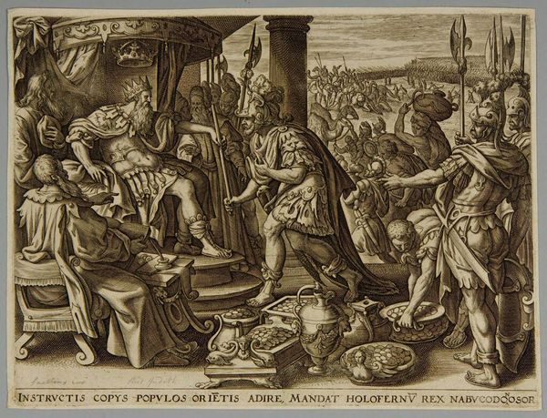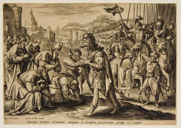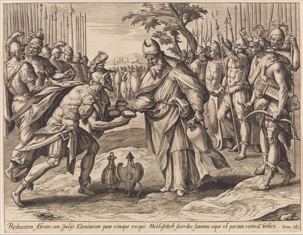 This engraving by Jan van Londerseel depicts the biblical encounter between David and Abigail. Notice the laden donkeys and abundant offerings of bread and wine – symbols of peace and sustenance, offered to appease David’s wrath. Abigail's gesture, arms crossed over her chest, is one we've seen echoed through centuries, a universal appeal for mercy and understanding. It reminds me of supplicant figures in ancient Roman reliefs, or even the Virgin Mary in countless Annunciation scenes. The act of offering gifts, too, isn't unique to this story. We find it in ancient Egyptian tombs, Renaissance paintings, and even in modern diplomatic exchanges. Consider the cup in the foreground, gleaming. A chalice, a symbol of offering, sacrifice, or even the holy grail—a vessel imbued with history and emotion, passed down through generations. These symbols aren’t fixed, but evolve through time and memory. They echo and reverberate through our collective consciousness, taking on new resonances with each retelling. This image is a testament to the enduring power of symbols to convey complex emotions and connect us across time.