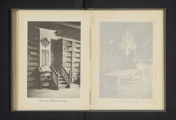 Editor: So, here we have a photographic print dating from before 1895, by Jules Royer. It's titled, "Gezicht op een zaal met renaissancekunst in het Musée Antoine Vivenel in Compiègne, Frankrijk"—or, a view of a room of Renaissance art. I find it so fascinating that someone photographed art like this. It makes the room seem so… untouchable, you know? What’s your take? Curator: Untouchable... I love that! It has a certain reverence, doesn't it? Like peering into a reliquary of the past. The light itself feels almost sacred, pooling in corners, highlighting specific textures, doesn't it? What strikes me most is the curatorial hand at play, even then. Those weapons, the placement of paintings—they're telling a story, constructing an idea of the Renaissance just as much as the objects themselves do. Do you feel the intention in its staging? Editor: Definitely! It feels deliberate, staged for our viewing pleasure... but from a distance, like we aren't invited in. All of that craftsmanship behind a photographic veil. Does the photograph change our relationship with those Renaissance objects? Curator: Oh, absolutely! Photography inherently frames and reframes reality. It's like hearing a symphony through a crack in the wall – you get snippets, whispers of the full experience, which paradoxically can heighten your longing to understand what's really happening. It makes the Renaissance feel so curated, so deliberate and presented. Almost, dare I say, manufactured? It reminds us that history itself is a performance of objects and their presentation. What do you make of that thought? Editor: Wow. It almost feels meta, a copy of something already trying to copy a specific moment in time... Food for thought! Thanks! Curator: My pleasure! Perhaps the photograph allows us to engage with that constructed narrative, revealing the curator’s hand alongside the artist’s. A powerful reminder.