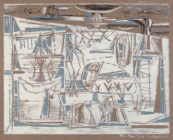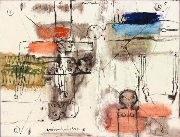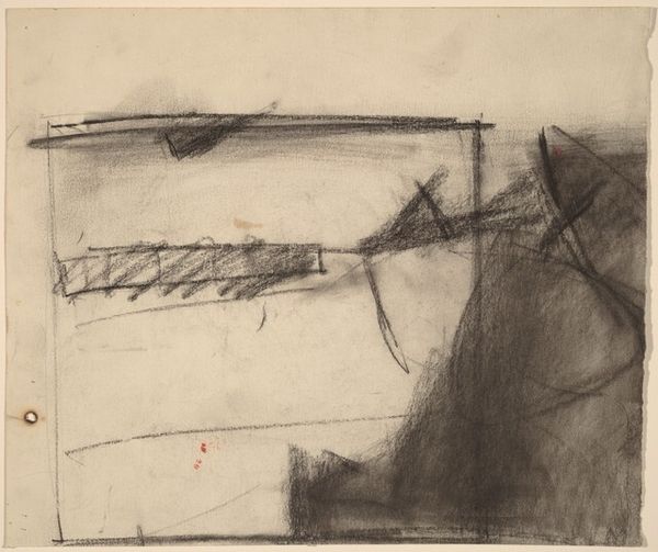 Editor: This mixed-media work, “Czóbel Béla Tengerpart 1930” by Béla Czóbel, looks like a quick sketch on paper using charcoal and watercolors. It’s very gestural and seems to capture a scene at the seaside. What can you tell me about it? Curator: Well, from a materialist perspective, consider first the interplay between the chosen media. The rough charcoal marks suggest immediacy, perhaps a quick capture of a fleeting moment or scene, democratizing artistic practice from laborious techniques. The watercolor adds a layer, but very thin, a secondary intervention of artistic intent. What kind of labor is involved in producing this 'quick sketch'? Editor: That's interesting! I hadn't thought about it in terms of labor and speed. Are you suggesting it’s less about skilled precision and more about capturing something raw, almost like artistic journalism? Curator: Precisely! The materials speak to the artist's process. Notice how the artist uses inexpensive, accessible materials. What does that imply for the intended audience and accessibility to art making in 1930? Was Czóbel perhaps responding to the socio-political context by utilizing such common materials? Editor: I see. Using these inexpensive materials does move away from more traditional notions of high art. Perhaps it's an intentional democratization of art, focusing on capturing an experience rather than creating a precious object. Curator: Exactly. Furthermore, consider the support - paper. Fragile, easily transportable, disposable, reproducible... All of these properties have socio-economic impacts that shift how we percieve "fine art". Editor: This changes my perception. It is now much more about the creative and production processes, a specific record of place and time, rather than any attempt at timeless beauty or permanence. I like how these materials challenge art boundaries! Curator: Absolutely, viewing it from this angle provides rich insights beyond mere aesthetic appreciation. It makes you wonder what Czobel aimed to express with his material choices.