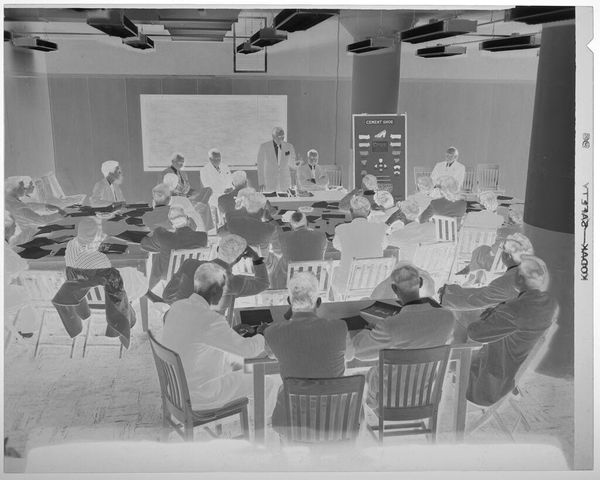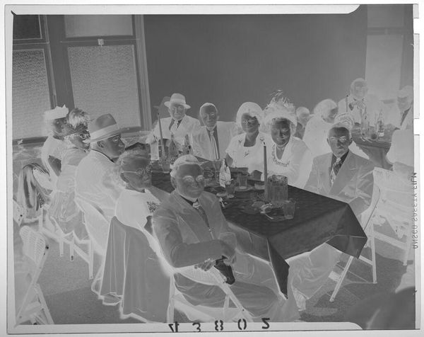 Editor: This is an untitled photograph by Lucian and Mary Brown, showing adults and children in a living room. It's a small print, only about 4x5 inches. What strikes me is how staged it feels, almost like a set. How do you interpret this work? Curator: I see a fascinating document of domestic labor and social dynamics. Note the array of materials: the furniture, the textiles, the activities occupying each person. These objects and actions indicate social class and relationships within the household. Who produced these goods, and under what conditions? Editor: So, you're focusing on the material circumstances embedded in the image? Curator: Precisely. Even the act of photographing itself is a material process, involving specific technologies and a certain amount of labor. Consider how the final print, its size, and its potential circulation impact its meaning. It's less about the posed scene, and more about the tangible realities that constitute it. Editor: That's a totally different way of seeing it. I guess I was stuck on the surface. Curator: By examining the material conditions of its creation and the social context it represents, we gain a deeper understanding.