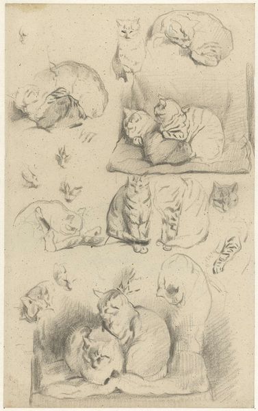 Guillaume Anne van der Brugghen made this drawing of cats sometime in the 19th century, using graphite on paper. The medium of graphite is an interesting one. Though we think of it as a quintessential art material, it only became readily available when large deposits of graphite were found in England in the 16th century. Graphite is intrinsically linked to industry; first used for marking sheep, then for lining molds for cannonballs. It was only later that graphite was recognized for its artistic applications. Here, van der Brugghen coaxes a wide range of tonal variation from the graphite, rendering the soft fur of the cats with delicate strokes. You can almost feel the weight of these sleepy felines. This drawing, with its understated materials and focus on capturing a fleeting moment, challenges the traditional hierarchy between fine art and the everyday.