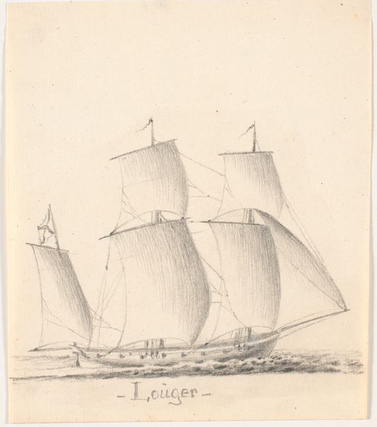 C.A. Lorentzen captured this Skonnert with pencil on paper. The drawing presents a ship at sea, rendered with delicate lines and subtle shading. The composition emphasizes the vessel's structure, with masts and rigging reaching upwards, contrasting against the vastness of the sea and sky. The focus on form and structure draws attention to the ship as a symbol of human ingenuity and maritime exploration. The artist's choice of medium allows for a detailed yet understated representation, inviting viewers to appreciate the intricacies of naval architecture and the dynamic relationship between the vessel and its environment. The drawing’s composition, with its careful attention to balance and proportion, evokes a sense of harmony and order. This approach aligns with the period's broader artistic interest in capturing both the aesthetic beauty and technical precision inherent in maritime subjects. The artwork, while seemingly simple, encapsulates complex ideas about human ambition, technological progress, and the allure of the sea.