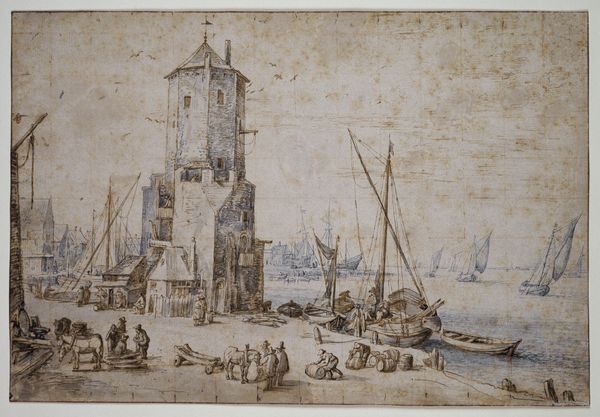 This is Gerard ter Borch the Younger's sketch of Zwolle, rendered in pen and brown ink. Zwolle, Ter Borch's birthplace, emerges as more than just a scenic backdrop; it represents a nexus of personal identity and civic pride during the Dutch Golden Age. The drawing is spare, it is not an idealized vision, but a matter-of-fact representation of the city's architecture and bustling port. Ter Borch's choice to depict Zwolle, his place of birth, speaks to the interplay between personal experience and cultural identity. The scene is of a society undergoing significant transformation, with the rise of a merchant class and the evolving roles within the family, and this piece is a symbol of civic identity and economic vitality. Here, identity is intimately tied to place, and history is etched into the very fabric of everyday life. This humble sketch echoes enduring questions of belonging, memory, and the ever-changing relationship between the individual and the world around them.