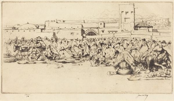 This etching, Hindu Village, was made by Paul Gangolf, but when exactly, well, that’s part of the mystery. Look at how Gangolf crams so much into such a small space. The composition is jam-packed with figures, animals, and structures, all rendered with this wiry, energetic line. He’s not trying to give us a photograph, instead, he’s using the etching needle almost like a pen, sketching out a world as he imagines it. The texture is created entirely through line, hatching and cross-hatching giving a sense of depth and shadow, even though it’s all in monochrome. Notice the areas where the lines become denser, like in the foreground figures, and how this creates a sense of weight and presence. Then, look up at the sky, where the lines are sparser, giving a feeling of openness. It’s like Gangolf is inviting us to get lost in the details. The organized chaos reminds me a little of James Ensor, who was also fascinated by crowds and theatricality. Art is all about keeping the conversation flowing.