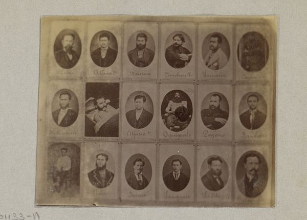 Editor: This photograph, taken around 1905 at the Ohio Penitentiary, shows an electric chair next to twenty-three portraits. What strikes me is the unsettling combination of institutional authority and human vulnerability presented in this collage-like image. What is your take on this, seeing it through a historical lens? Curator: It’s unsettling for a reason. The late 19th and early 20th centuries witnessed a surge in scientific and pseudoscientific attempts to categorize and control the criminal body. This photograph is not just a record of executions; it’s a cultural artifact, reflecting anxieties about crime, race, and the expanding power of the state. Editor: So it’s a way for the prison to mark its power through photography? Curator: Precisely. Think about the phrase "Photos made from life", boldly stated at the bottom of the photo and its commercial context as a souvenir. It turns state-sanctioned death into a commodity, subtly reinforcing the idea that the lives of these executed individuals were disposable. What kind of dialogue do you think the institution tries to foster through this photographic composite? Editor: That's really disturbing, now that I consider that it was priced at only 25 cents. It makes me wonder who exactly purchased such memorabilia? This image clearly represents an exploitative power dynamic at work within the prison institution, normalizing a grim form of historical accounting and dehumanization. It shows an interesting power dynamic between viewer, object and prison. Curator: Exactly. And isn't it interesting to reflect on the act of witnessing these men in photography as compared to witnessing the live executions themselves? The proliferation of images like this had real political consequences, as well as offering valuable research material into crime and punishment. Editor: Thank you for these reflections; it’s changed the way I understand photography’s power to shape social perceptions of the law and criminality.