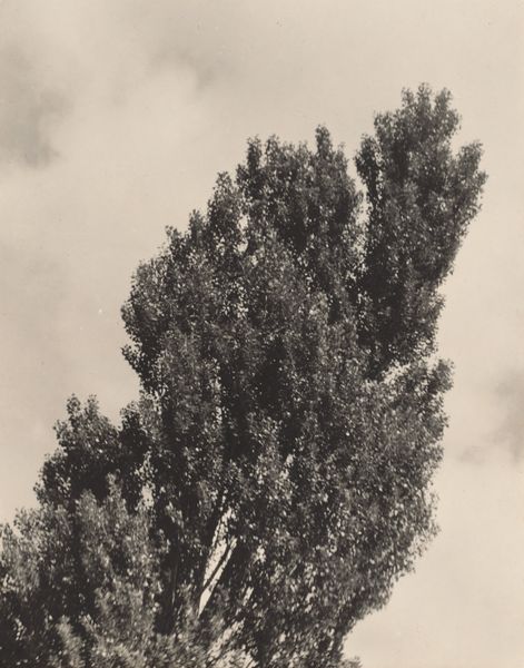 Curator: This is a photograph by Alfred Stieglitz, made around 1927. It's a gelatin-silver print, and he titled it "Equivalent." Editor: The word "equivalent" feels significant here. It’s like I'm staring at a moody dreamscape captured in grayscale. Are we sure it isn’t abstract charcoal? Curator: Well, Stieglitz was indeed deeply involved with the movement to elevate photography to the level of fine art. So the soft focus, high contrast and everyday subject reflect some modernist approaches. The picture might suggest a landscape but moves quickly toward pure shape and form. Editor: So it is both there and not there? A physical location abstracted to oblivion? It certainly gives me the same lonely feelings as gazing at an early modernist painting... those sweeping brushstrokes in stormy blues... do you see a kindred spirit here? Curator: I do. In the '20s, Stieglitz was exploring the idea that a photograph could represent not just a visual scene but also an internal state, that the clouds were symbols. Hence the title “Equivalent”. He was trying to provoke questions around what’s actually being depicted versus what it truly communicates. Editor: Well, he succeeded in my case. Looking at this makes me ponder big themes, feelings of isolation versus connection. I’m reminded of staring out train windows on a long journey, watching the world blur... Did he plan the picture or do you imagine he just caught what was at hand? Curator: The ‘how’ becomes especially interesting. It's crucial to note his intense commitment to capturing the "decisive moment"—the intersection of timing, light, and subject—and it might also reflect a deep anxiety about modernity's effects upon the self. Editor: Maybe a bit. Thank you for shedding light on these shadows. For a simple cloudscape it becomes very meaningful. Curator: A simple cloudscape pregnant with significance. That's the beauty of "Equivalent." Editor: Exactly. Now, if you’ll excuse me, I think I’ll find my own quiet cloud.