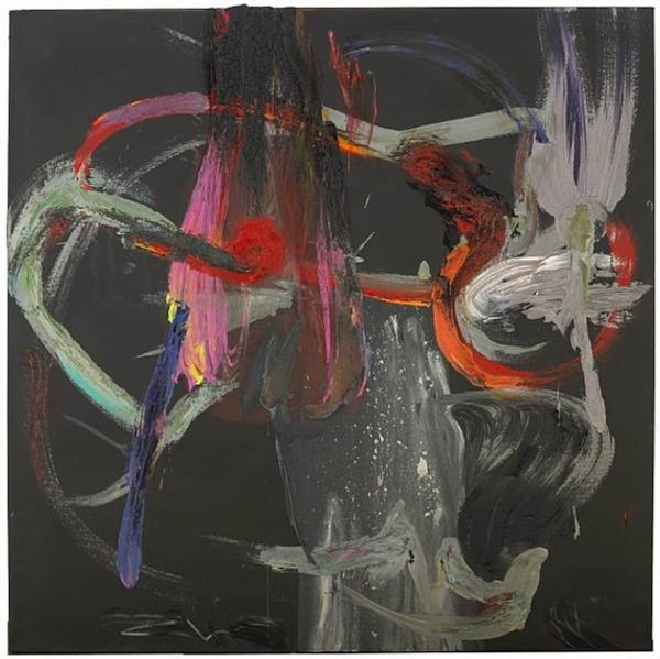 Stephen Mueller made “Take That Back (Black #282)” with paint, and I get the feeling that he had fun doing it. There's something so free about the way he lets the colors play against the dark ground. Looking closely, you can see how the paint is applied, sometimes thick, sometimes thin, almost transparent in places. I love the way he uses the brush to create these swirling, almost floral forms. Like in the lower section of the piece, that little cluster of red, white, and blue strokes against the black. It's like a burst of energy, a little firework right there on the canvas. The colors are so vibrant, they almost seem to glow against the dark background, creating this incredible tension, between light and dark. Mueller’s work reminds me of the paintings of Joan Mitchell. But where Mitchell is all sweeping gestures, Mueller is tighter, more intimate, but just as playful, embracing the mess and the magic that happens when you let the paint lead the way.