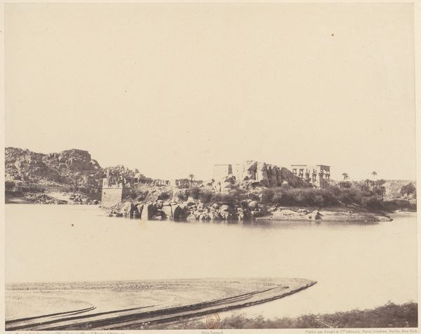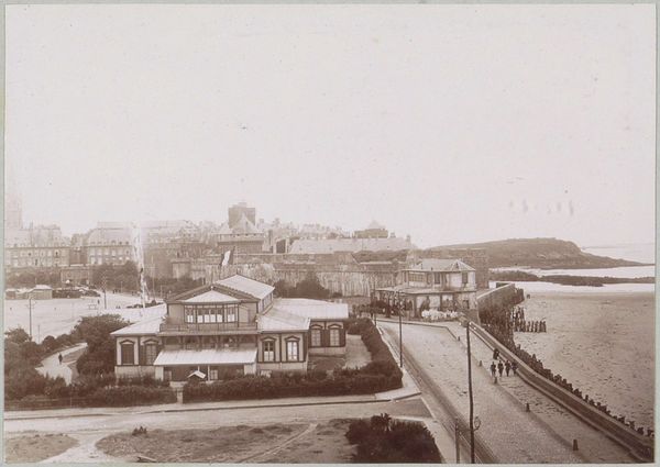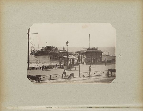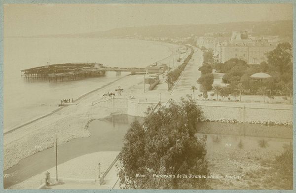 Editor: Here we have "Gezicht op de Quai des Eaux-Vives in Genève," a photograph taken by Auguste Garcin before 1880, an albumen print. It's such a sepia-toned window into the past. There's a peaceful quality to it, despite the bustle of the harbor. How do you connect with this piece? What story does it tell you? Curator: You know, looking at it, I'm struck by how timeless and yet, inevitably, time-stamped it feels. The sailboats conjure images of grand voyages, while the very formal gardens are so deliberately constructed and shaped—but then I see a little blotch there on the emulsion, like a rebel memory that's breaking the pose. I’m left to wonder, how much of that pristine elegance was wishful thinking? And do we still airbrush our collective images now? Editor: That’s a lovely way of putting it - "rebel memory.” It definitely feels like there’s a curated reality presented. I'm curious about that harbor scene... Were albumen prints common for landscape photography? Curator: Absolutely! This albumen process yielded sharp details with a wide tonal range, ideal for capturing landscapes and cityscapes during that era, as evidenced here with the architectural details and the water reflecting light. Did you also pick up on the composition? See how it draws you from that formal garden into the water and back? Editor: I do. And knowing this was taken "before 1880" adds an extra layer to appreciating that garden - imagining all those Victorians in their finery, enjoying that same view. I guess in that regard the rebellion worked - they left their mark and continue to draw us back in. Curator: Exactly! The photograph manages to hold both the grand aspirations and the gentle echoes of the ordinary, don't you think? Now if only we could find out what song was being sung at that exact moment. Editor: Yes! That would truly be a find. Thanks for sharing your thoughts! I am left wondering about other cities and ports that might look similar...