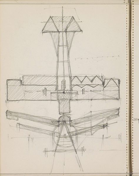 Curator: Looking at Reijer Stolk's "Vliegtuig en vliegtuigonderdelen," dating somewhere between 1906 and 1945, I’m immediately drawn to its fragility. It's just pencil and graphite on paper, but it evokes this potent sense of nascent ambition. Editor: My first thought: schematic chaos! A whirlwind of graphite suggesting metal and possibility. There's something about the materiality – simple pencil on paper – juxtaposed with the complexity of aircraft design, that hints at the broader story of technology becoming a readily consumed fantasy, rendered cheaply. Curator: Exactly! You’ve nailed the fantasy element. The sketchiness allows us to fill in the blanks, projecting our own dreams of flight. It’s less about precision engineering and more about the raw impulse to conquer the sky. Do you feel the ghost of Leonardo da Vinci hovering around here? I always do... Editor: Perhaps, but with a critical twist. Da Vinci's inventions were often grounded in a desire for practical application, whereas Stolk's seems to flirt with a world increasingly shaped by mass production and mechanized warfare. It’s rendered abstraction isn’t just aesthetic. Its reflective of detachment and the cold geometries of power and what these new tools enabled.. The ease with which paper renders plane components… it's both mesmerizing and unsettling. Curator: I agree, the context is crucial, especially that date range spanning both the optimism of early flight and the brutal reality of WWII aerial warfare. Those ghostly lines do start to feel ominous when you think about the evolution from dream to devastating weapon. It makes you think about all of those artists at that time being confronted with that same duality. Editor: And about the hidden labour! Pencil production involved mining, manufacturing…consider the socio-economic infrastructure propping up even a "simple" sketch like this, how graphite literally is connected to this fantasy on the page. Even with this minimalist medium it implies complex resource networks that enabled these advances. Curator: Well, looking at it this way certainly opens up a dialogue I hadn't initially considered. Perhaps this sketch contains far more questions than answers about humans and progress, doesn't it? Editor: Indeed. From airborne aspiration to industrial reflection all encased within this understated drawing.