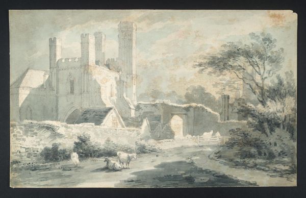 Curator: Blondel’s watercolor, "Landscape with Ruins," presents a crumbling architectural fantasy. It evokes a sense of melancholy and the transience of human endeavor. Editor: The way that Blondel has constructed the landscape, the materials and labor it took to create those ruins. It's interesting how we are consuming a moment in time that is long past. Curator: Indeed. Notice the classical composition, the picturesque arrangement of forms—the ruins framed by the waterfall and rock outcropping. Editor: This could be related to the Grand Tour that the elite of the 17th and 18th centuries would take around Europe. I think Blondel might be creating a commentary on wealth and class. Curator: Perhaps, but the delicate washes and carefully balanced asymmetry create a visual harmony that transcends mere social commentary. Editor: The workers who built the edifice that is now ruins, and the labor it took for them to complete the job, is what I would be curious about. Curator: It's a fascinating blend of decay and beauty, inviting contemplation on the nature of time and artistic representation. Editor: True, and I am fascinated by the material culture that helped produce the image, the tools needed to render this world.