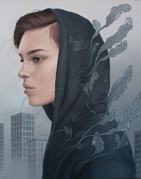"Brave Seas" by Sarah Joncas is rendered with careful detail using acrylic on wood panel. The choice of wood is interesting. It lends a warmth and slight texture to the surface, subtly contrasting with the cool, dreamlike quality of the imagery. Consider the labor involved in preparing such a panel: the selection, sawing, sanding, and priming, all before the first brushstroke. Joncas has used the acrylic medium in a way that mimics the smooth, layered effects of oil paint, but with a quicker drying time that allows for efficient layering and precise detail. This method allows the artist to create sharp lines and soft gradients and to add detailed elements like the individual strands of hair, or the intricate wave patterns. The juxtaposition of careful planning and spontaneous mark-making gives the artwork a captivating tension. The artist encourages us to consider the act of creation itself, as a conscious and deliberate process.