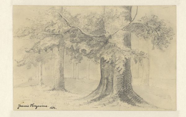 Here is your audio guide script: This anonymous image of Soerense Bossen is presented as a stereoscopic card, a popular format which creates an illusion of depth. The composition is dominated by vertical lines of trees, repeated across both panels, evoking a sense of rhythm. The limited monochrome palette emphasizes form and texture, drawing attention to the contrasts between the smooth trunks and the dense foliage. Structurally, the image explores the relationship between foreground and background, inviting contemplation of space and perspective. The use of stereoscopy adds another layer, challenging our perception of reality through constructed depth. Considered through the lens of semiotics, the forest setting itself operates as a sign, rich with cultural associations of nature, mystery, and the sublime. The artist uses these visual and cultural codes to create meaning, engaging with broader philosophical ideas about the natural world. This is not a mere representation, but a carefully constructed vision that invites us to reflect on our relationship with the environment.