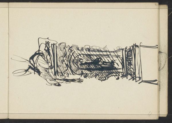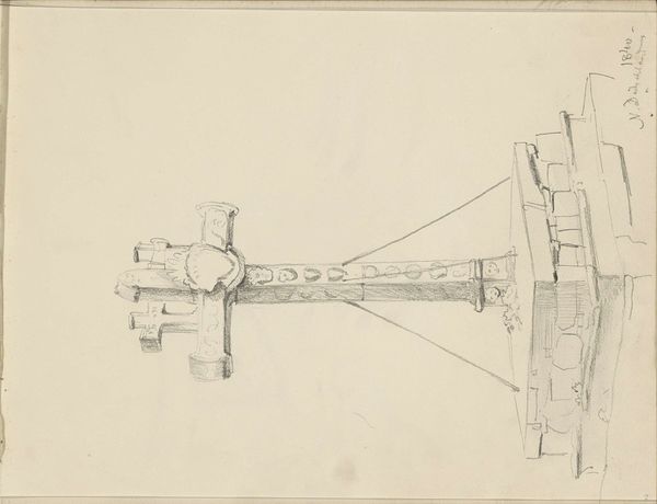 Isaac Gosschalk sketched ‘Zuil aan de achterzijde van het koor van de Sint-Bavokerk te Haarlem’ with graphite on paper. The drawing presents a detailed column, its linear precision and the stark contrast of graphite on paper immediately draw the eye. The composition is anchored by the column’s verticality, yet complicated by the ornate capital, which sprawls laterally and disrupts the expected symmetry. The tight, controlled lines suggest a meticulous architectural study, where ornamentation is rendered not merely as decoration but as integral structural language. There’s an interplay between the supportive function of the pillar and the exuberant expressions of its capital. The repetitive motifs suggest a deeper structural code, perhaps an exploration into how architectural elements communicate meaning through pattern and form. Consider how the artist challenges a fixed architectural order. The column isn’t just a support; it’s a canvas where classical form meets intricate design. It invites us to reflect on the dialogue between function and expression, revealing how architecture can be a complex interplay of structural and symbolic languages.