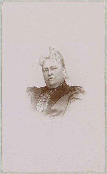 Editor: This is "Portret van een onbekende vrouw met een bril," or "Portrait of an unknown woman with glasses," taken between 1892 and 1906 by Johannes Baer. It's a photograph, so in monochrome, and I find her expression very intriguing. What do you see in this piece? Curator: The eyeglasses are significant, don't you think? Before widespread affordable eye care, spectacles carried a weight of intellect, study, even eccentricity. They speak volumes about access to literacy, social standing, and perhaps a dedicated pursuit of knowledge. Editor: That’s a really interesting point. I hadn’t considered the glasses as being so symbolic! I was mostly focusing on trying to read her face. Do you think the elaborate trimming on her dress means anything, symbolically? Curator: I do. Consider the meticulous detail in the embellishments – not just an adornment, but a declaration. This woman uses constructed and performed identity markers, like clothing and the ‘status symbol’ of eyewear, to convey information. Is this a way of ensuring her likeness is represented appropriately to society or to her family? This photograph serves as a type of ancestor portrait. Editor: It’s like she’s very deliberately crafting how she’s seen. Given that the sitter is “unknown”, do you feel as though that impacts the symbolism? Curator: Indeed. Her anonymity almost amplifies the symbolic nature of the photograph. Without knowing her specific history, we're left to interpret the symbols – the glasses, the brooch, the serious demeanor – as clues to a broader cultural narrative of women and intellect in that era. She represents perhaps countless women. Editor: So, reading the image, almost like a text… I’m going to remember to look beyond the obvious next time. Thanks! Curator: And I to consider what these lasting photographic portraits of anonymous individuals represent. A compelling tension!