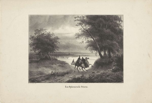 Curator: The work before us is “De Stoppelberg” created between 1857 and 1864, by Hendrik-Dirk Kruseman Van Elten. It appears to be an illustration of a harvested field and landscape, rendered in ink and pencil on paper. My immediate thought is how much detail he captures with so few apparent materials. Editor: There’s an almost ethereal quality to this. The pale palette lends it a dreamlike air. I’m also struck by the composition; it's simple, but evokes a sense of place, maybe a memory of rural life? Curator: I agree; the lack of vibrant color really lets the texture do the work. The clouds, for instance. You can almost feel the weight of the sky bearing down. Looking at it materially, I'd be curious to know how the print was made, what types of paper and ink were locally sourced. The image production plays such an integral role in disseminating concepts of nationhood and identity during the mid-19th century. Editor: Absolutely, thinking of its historical context allows me to further reflect on land usage and agriculture as a social landscape of power relations. What sort of societal narratives are implicit in this seemingly placid vista of a harvested field? Who has the privilege of surveying and documenting these environments? Curator: Precisely! It begs us to explore the intersection of nature and social structures during this era. Is it a neutral recording, or a carefully constructed presentation meant to shape public understanding and national pride? Editor: Well, given Van Elten’s other work, and the Romanticism prevalent at the time, I suspect he saw the landscape as more than just arable land. Perhaps a source of spiritual or national identity. But this is complicated by issues of land ownership, labor exploitation inherent to agrarian societies... I find these tensions incredibly compelling. Curator: I do agree; there is an incredible, conflicting sense of serenity and subtle unrest, made accessible by a kind of simple materiality. It offers a lens onto broader themes of environmental exploitation within the context of expanding industrialized nations. Editor: So, while the "De Stoppelberg" initially comes across as an uncomplicated landscape image, a deeper dive reveals a dense and complex relationship between art, agriculture, nationhood and the power dynamics underpinning its social and political landscape.