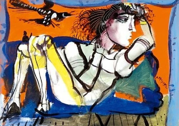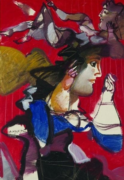 Dimitris Mytaras created this painting of a female figure, using bold colors and flattened perspectives. Its social context emerges from Greece, where Mytaras was a leading figure in the post-war artistic scene. Mytaras’s fragmented representation challenges traditional portraiture, moving beyond mere likeness to explore psychological depth. The influence of early 20th-century expressionism is clear, and this was an international style that often served as a form of social commentary. During this period in Greece, artists grappled with questions of national identity, cultural heritage, and the rapidly changing social landscape, partly through their affiliations with local museums and galleries. Mytaras’s female figure, therefore, reflects his participation in contemporary debates about gender, representation, and the role of art in Greek society. By consulting historical archives, exhibition catalogues, and critical reviews, we can continue to appreciate how this painting engages with the artistic and political dialogues of its time.