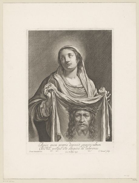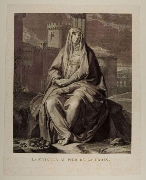 This is *Treurende Maria*, or *Mourning Mary*, an engraving made by Gérard Edelinck in the 17th century. Engraving is a printmaking technique with a long history. The artist uses a tool called a burin to carve lines into a metal plate, which is then inked and used to create multiple impressions on paper. Look closely, and you'll see how the incised lines form the image, creating a stark contrast between light and shadow. Notice the skilled labor required to create the image. Each line is deliberate, carefully placed to convey form, texture, and emotion. The time-consuming process of engraving underscores the value placed on craftsmanship and artistic skill in Edelinck’s time. Engravings like this one were often reproduced and circulated widely, making art accessible to a broader audience. By understanding the materials and making, we can appreciate the skill, labor, and social context that shape our understanding of the artwork.