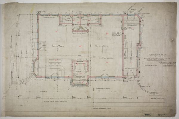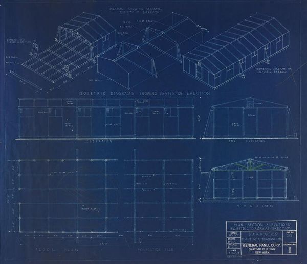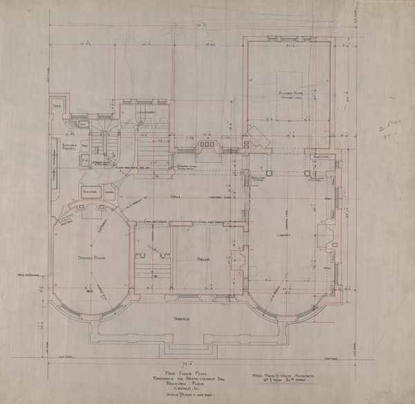 This is Adler & Sullivan, Architects’ "Standard Club Addition and Alterations, Elevations" made around 1883-1895, with ink and graphite on paper. What we see is not a building itself, but the technical drawing of one, an architectural plan. The composition is divided into two distinct but connected parts, one slightly larger than the other. The formal arrangement of the space is shown through precise lines and measurements; walls are defined with a deliberate thickness, and the negative space within suggests the volume and flow of the rooms. The drawing’s structure allows us to reflect on the relationship between representation and reality, between the abstract, technical blueprint and the lived, physical space. It speaks to architecture’s own semiotic system, a language of lines, symbols, and notations. The intersections of lines create an order which mirrors the structured society for which the building was designed. The drawing compels us to consider how architecture not only shelters but also shapes our social interactions and perceptions. The very act of planning and designing a space reflects intentions and cultural values.