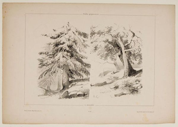 Editor: So, this is Alexandre Calame's "Four Sketches of Trees and Logs" from the Harvard Art Museums. It's a study, really—four different ways of looking at trees. What do you see in Calame's approach? Curator: It whispers of the Romantics, doesn’t it? Each sketch is a different mood, a different way of feeling the forest. The top left, that almost frantic energy, versus the serene stillness of the logs… Does it speak to you of the wild, untamed soul mirrored in nature? Editor: Definitely! It’s like a personal journey through the woods. I hadn't thought about it that way. Curator: Exactly! And isn’t that what art should do? Take us on a journey, not just show us a place? Editor: It makes me want to grab a sketchbook and head for the nearest forest. Curator: Me too! Maybe that’s the real magic—inspiring us to find our own wild landscapes.