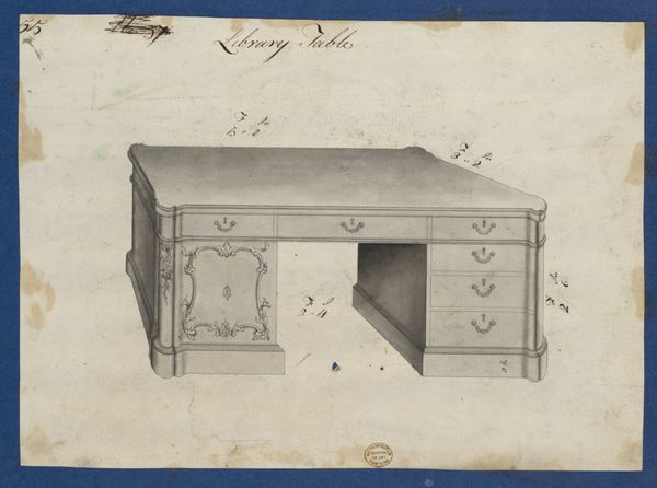 This ‘Library Table’ was designed by Thomas Chippendale in the 18th century, with pencil and grey wash on paper. It is a design, of course, not the table itself; yet it testifies to a world of making. Consider the qualities of the wood that would have been chosen: dense, fine-grained, and strong, perfectly seasoned to prevent warping. Imagine the expertise required to execute the carving on the legs and frieze, and the joinery required to give the table structural integrity. Chippendale’s genius was in coordinating all of this labor, and standardizing designs that could then be interpreted by many hands. The drawing thus represents a crucial moment in the history of design, when craft skill began to be organized according to proto-industrial principles. The result was luxury goods, such as this exquisite library table, made available to a wider market than ever before. The drawing gives us an insight into the artistry, labor, and market forces required to produce such a functional piece.
